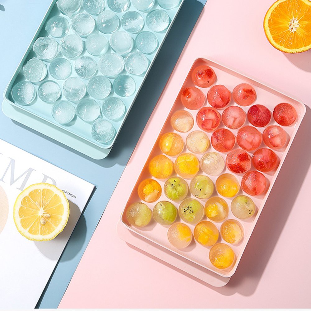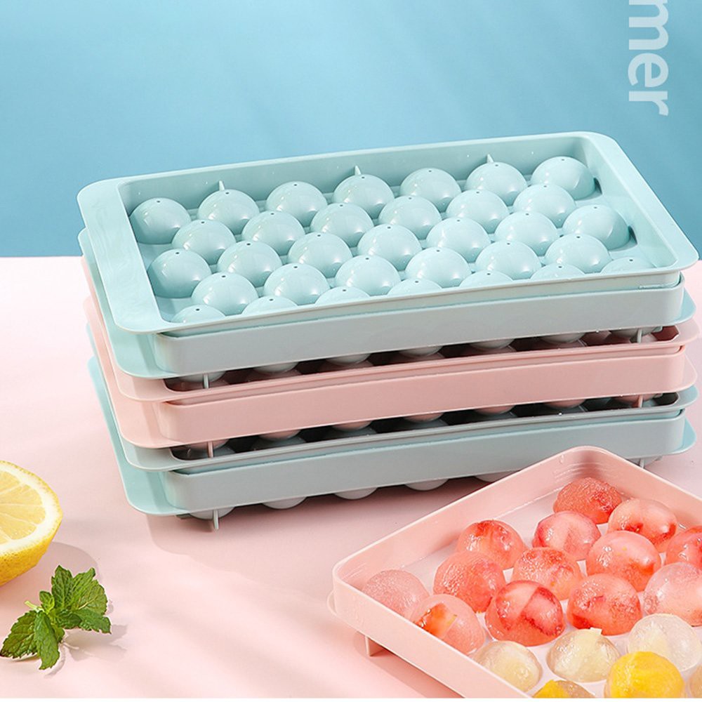 Khay làm đá viên, khuôn làm thạch hình tròn có nắp đậy chất liệu nhựa PP an toàn sức khỏeMỗi khuôn làm được 33 viên nhé