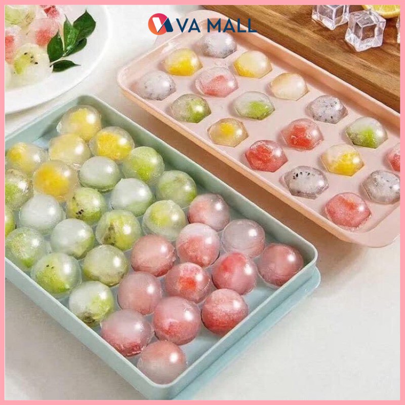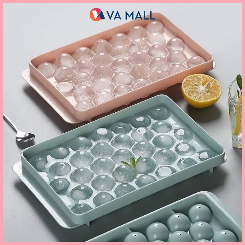 Khay làm đá viên tròn, khuôn làm thạch bi 33 viên có nắp đậy