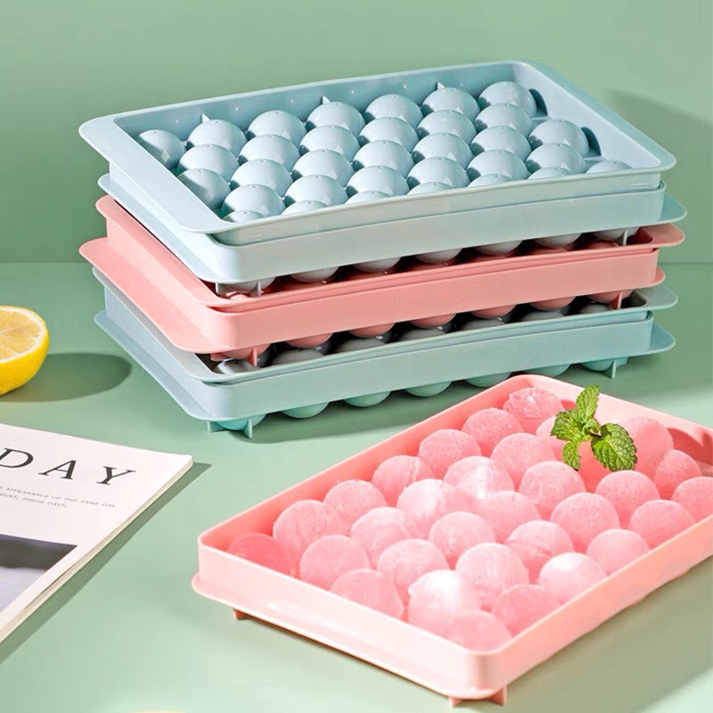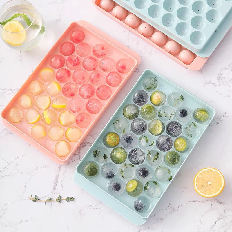 Khay Làm Đá Viên Tròn Tủ Lạnh Có Nắp Đậy 33 Viên Khuôn Làm Đá Thạch Rau Câu Đa Năng An Toàn Đảm Bảo Vệ Sinh