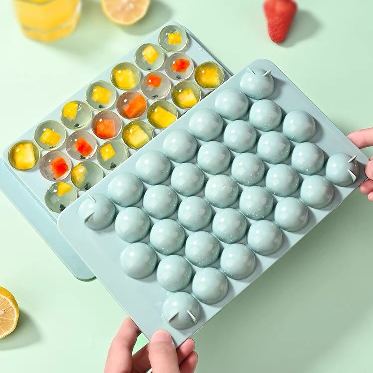 Giới thiệu Khay Làm Đá Viên Tròn Tủ Lạnh Có Nắp Đậy 33 Viên Khuôn Làm Đá Thạch Rau Câu Đa Năng An Toàn Đảm Bảo Vệ Sinh