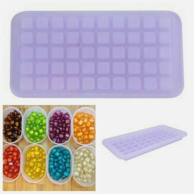 Khay làm thạch hình vuông, mỗi khay 50 viênKhay làm bằng nhựa cứng, dễ dàng sử dụng, chất liệu an toàn cho thực phẩm.