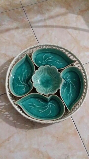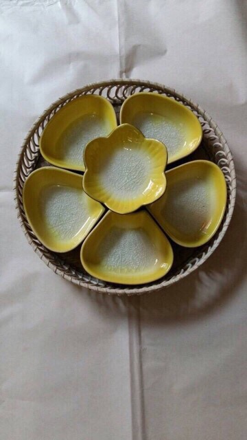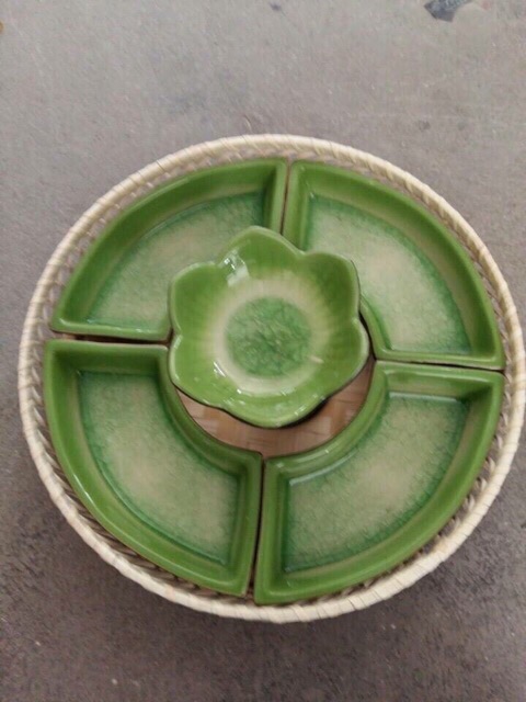 👉gồm 1 bếp đốt nến, trên có 1 bát nhỏ, 5 mảnh hình đặt trong lòng khay mây