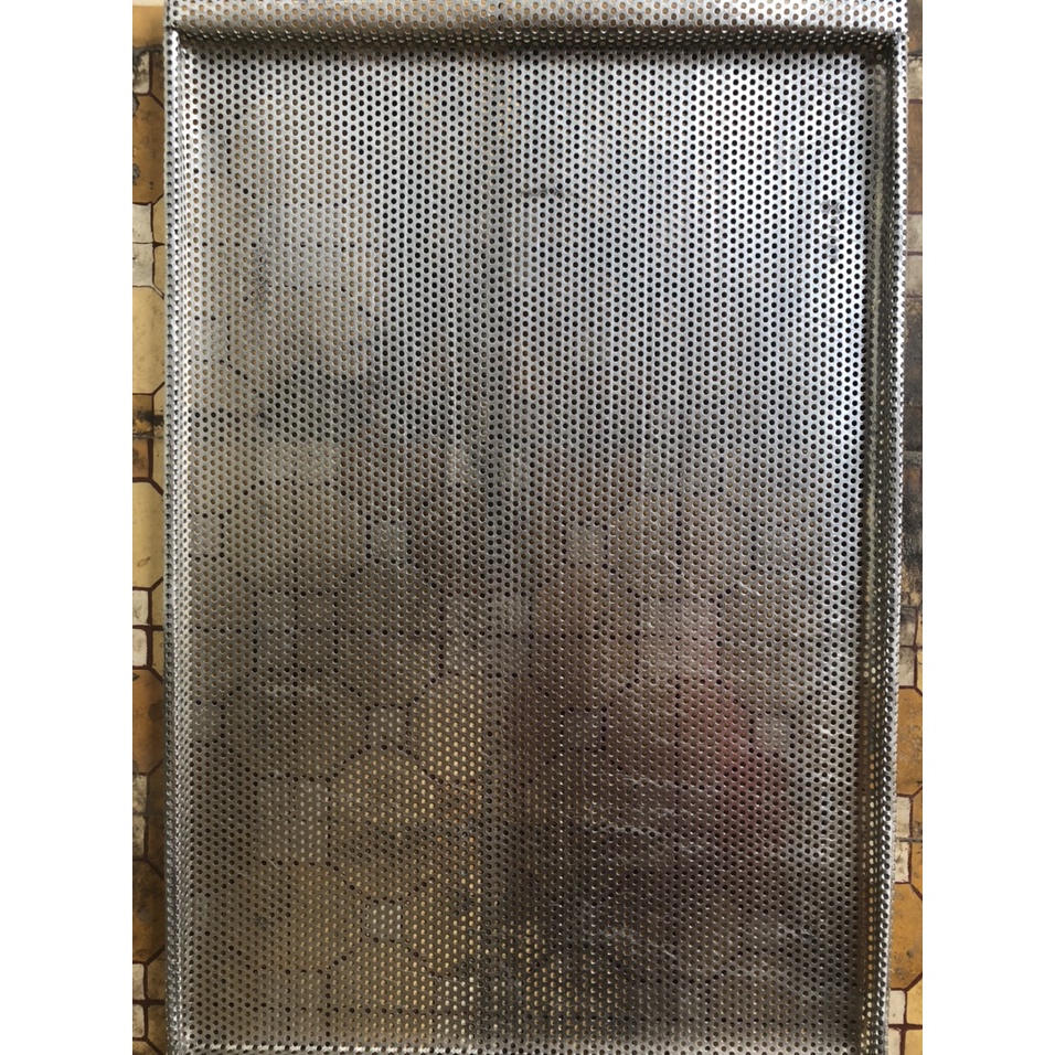 Khay lỗ làm từ nhôm không gỉ dày 2 ly.Khay có lỗ giúp thông thoáng khoang lò trên va dưới.