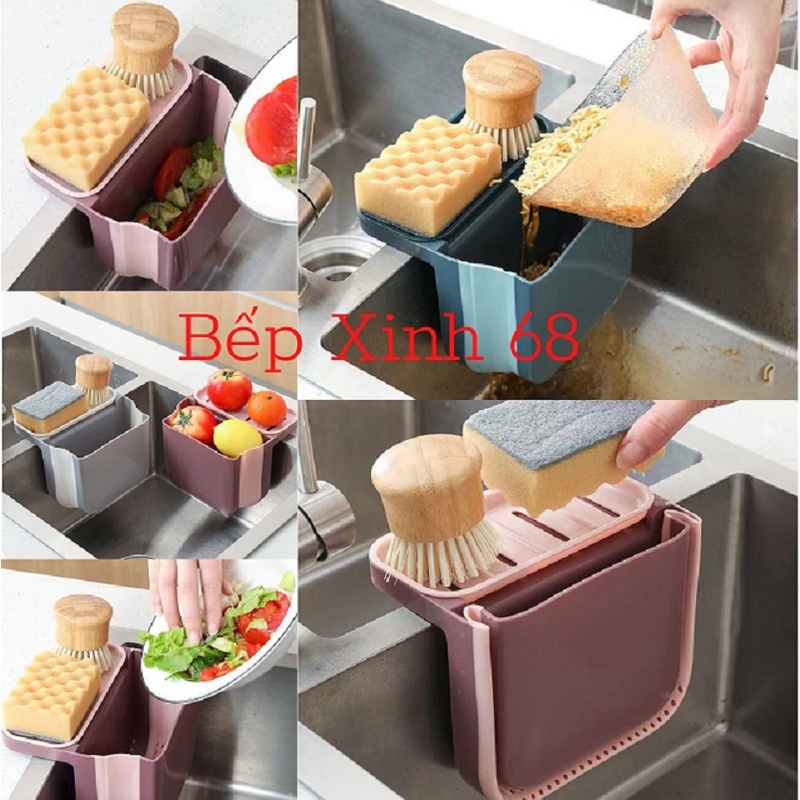Phần rổ này bạn còn để được giẻ rửa bát, xà bông, cọ xoong... luôn sạch sẽ, khô ráo. Khi không dùng đến, bạn gấp bọn phần rổ lọc lại tiết kiệm được diện tích cho bồn rửa.