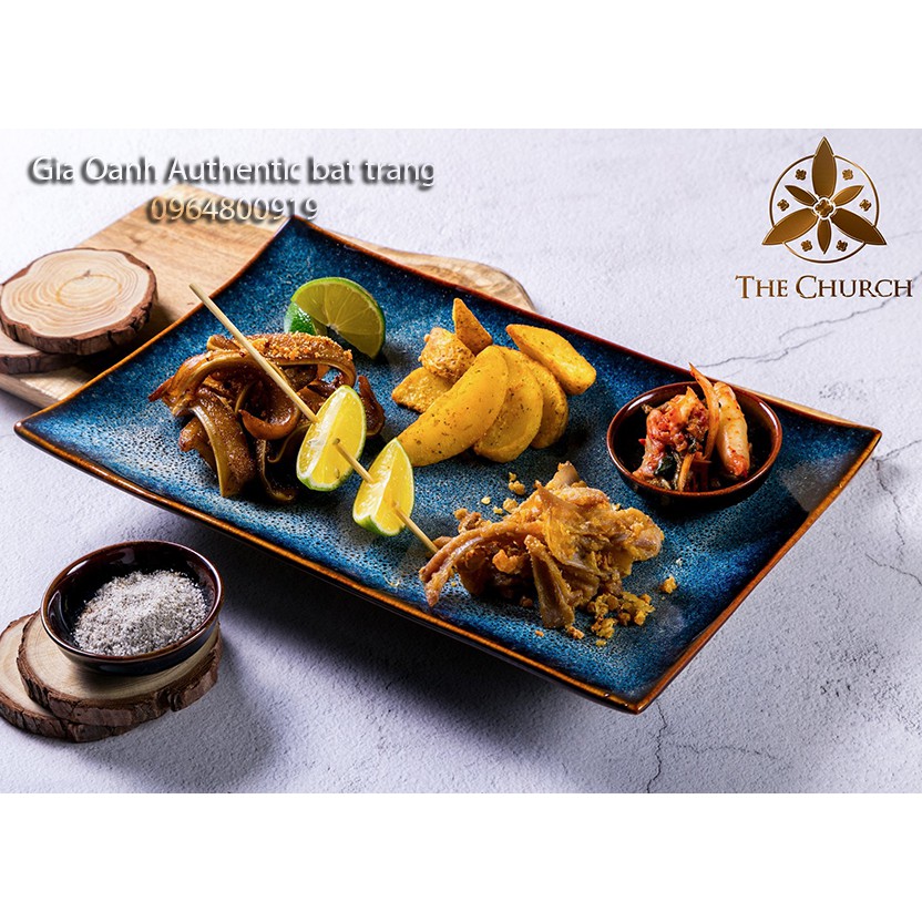 Nhà cửa & Đời sống > Bộ đồ bàn ăn > Dĩa || Khay lớn chữ nhật chuyên dụng cho nhà hàng - men xanh hỏa biến đẳng cấp sản xuất tại xưởng gia oanh Authentic bat trangCòn hàng