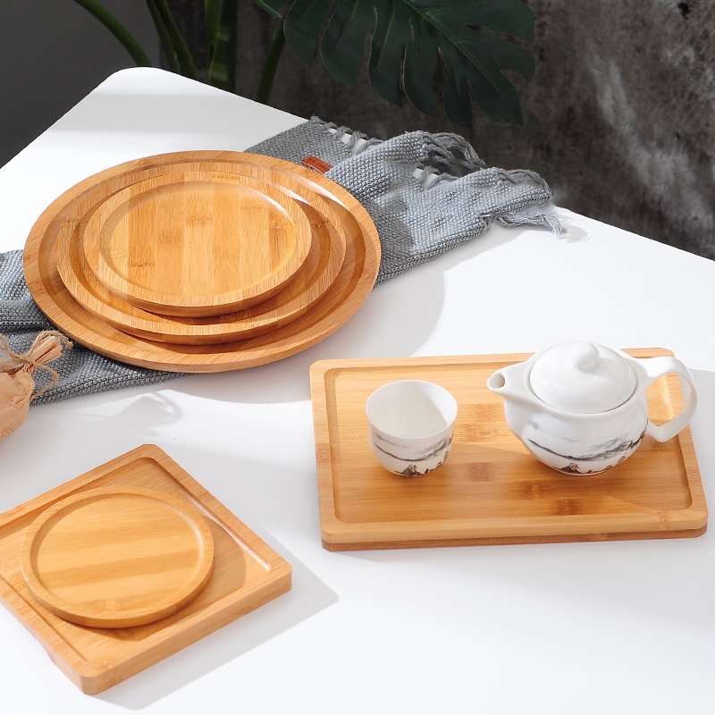Nhà cửa & Đời sống > Bộ đồ bàn ăn > Khay, tấm lót bàn ăn || Khay lót cốc lót ly cà phê khay lót chậu cây phong cách Nhật Bản làm bằng gỗ tre LC05Còn hàng
