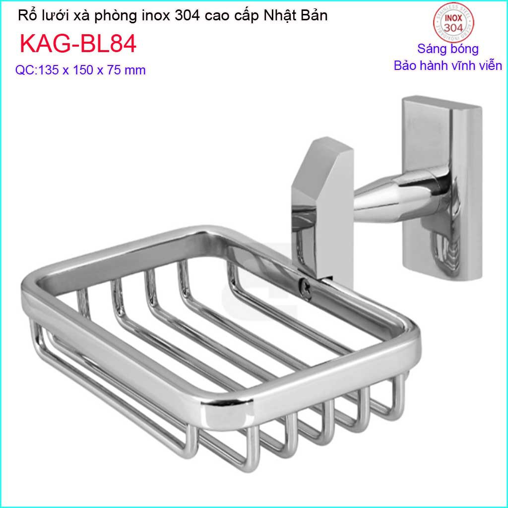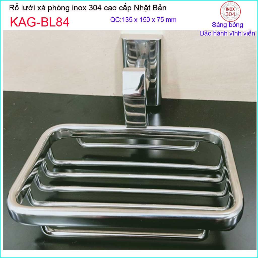 Khay lưới xà phòng, đĩa đựng xà phòng Inox 304 Nhật, kệ xà bông cục Inox Kace KAG-BL84KAG-BL84 (Dài 135mm x rộng 150mm x cao 75mm)