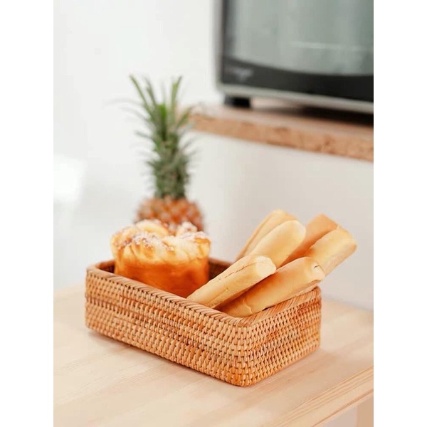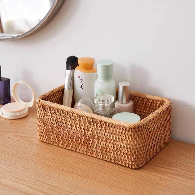 Khay mây chữ nhật Vintage bộ 3 cái dùng để decor đồ ăn, đựng mỹ phẩm, khăn, đồ đa năng