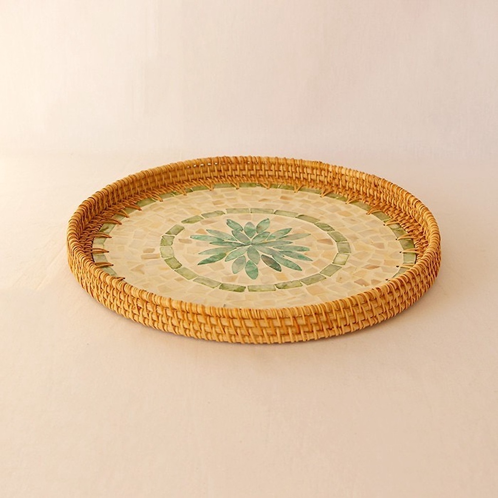 Khay Mây Đáy Khảm Trai Cao Cấp DepotFix Đường Kính 35cm