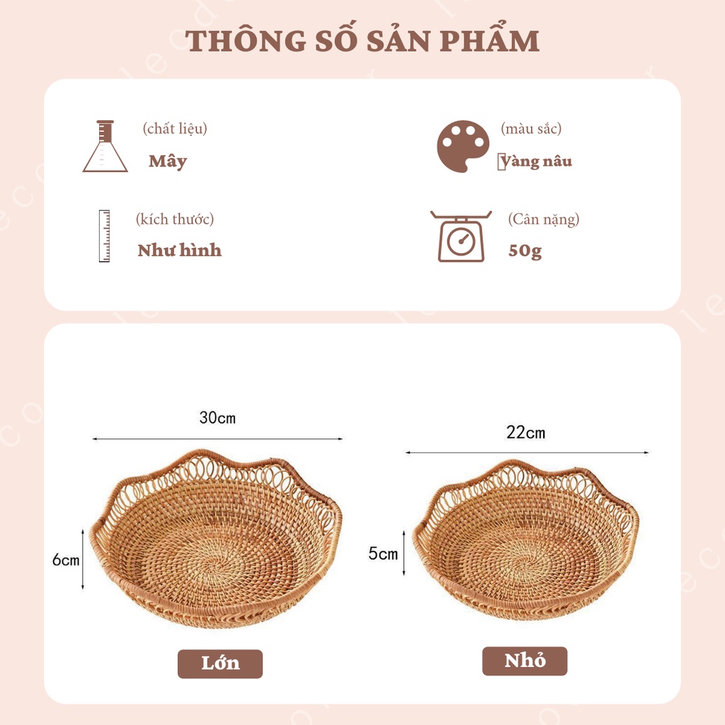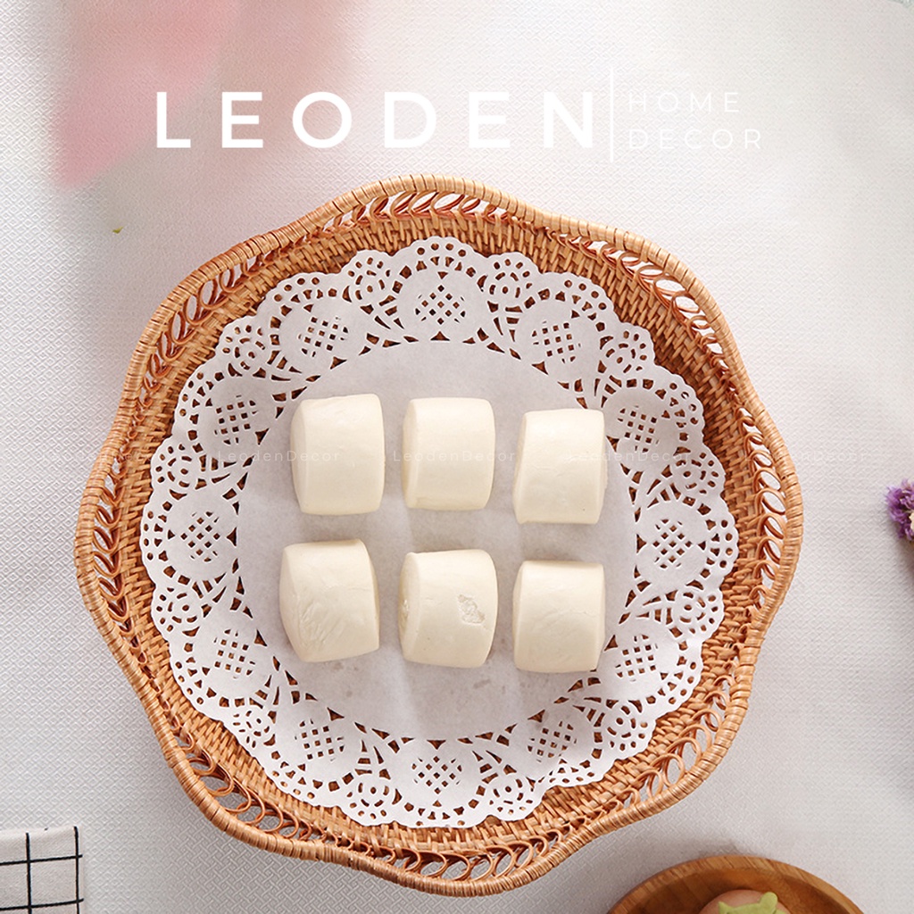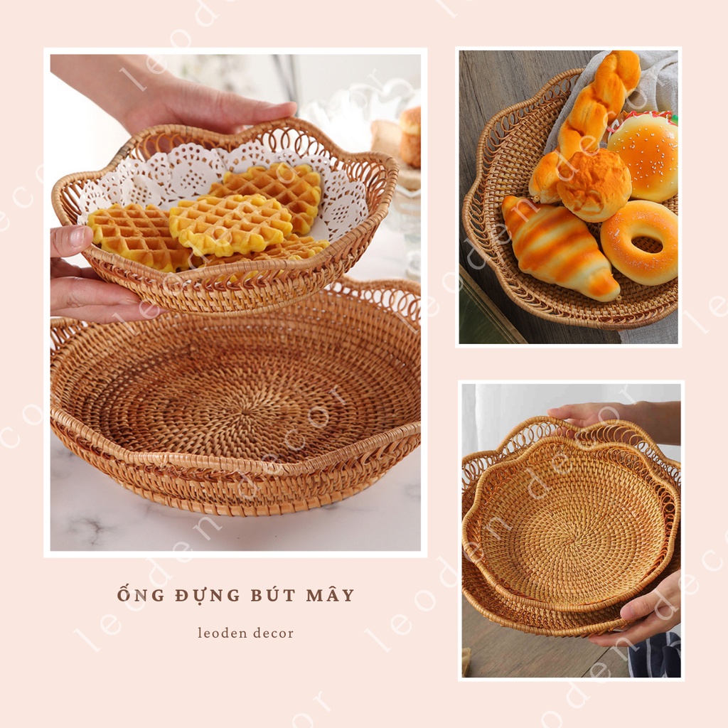 Khay mây hình tròn đựng thức ăn phụ kiện đẹp, rỗ mây đựng đồ trang trí, phụ kiện chụp ảnh decor -LEODEN DECOR✅ CAM KẾT SẢN PHẨM: