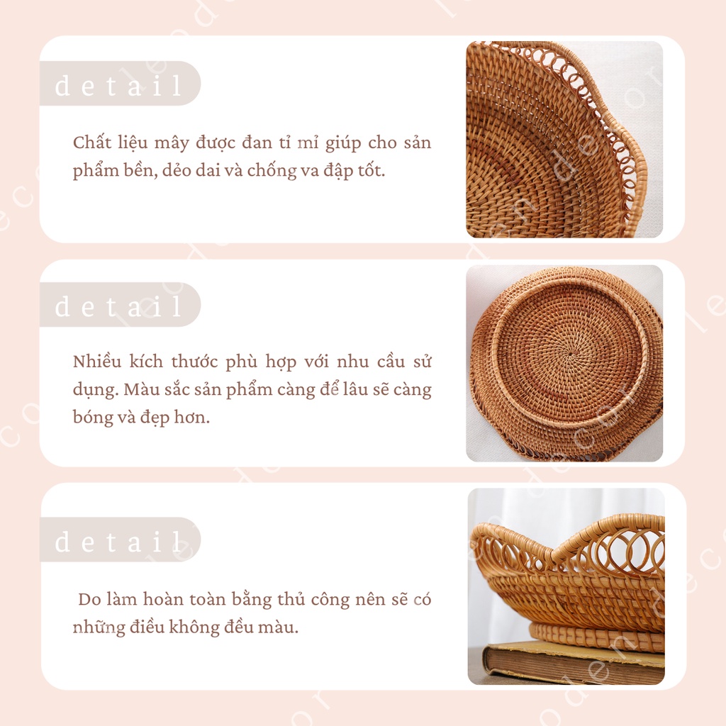 - Khay bằng mây có thể trang trí, Decor, sáng tạo cho nhiều mục đích khác nhau, chụp hình sản phẩm, trang trí phong cách mộc mạc