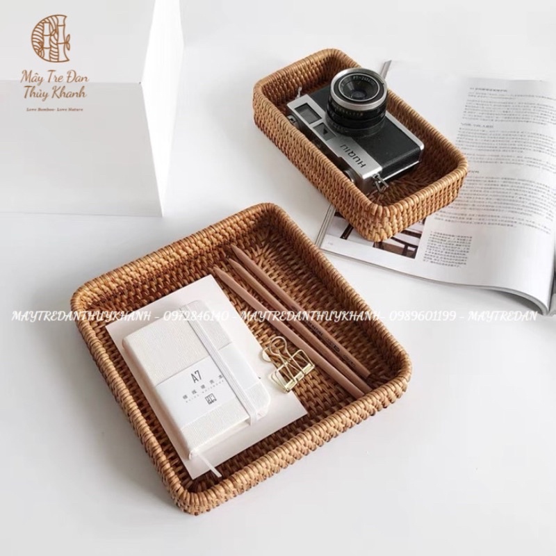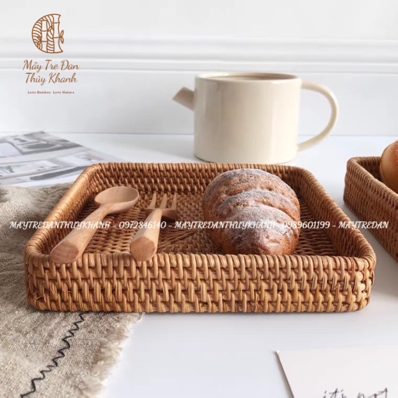Khay mây hình vuông đựng bánh mì decor nhà Mây Tre Đan Thuỷ Khanh