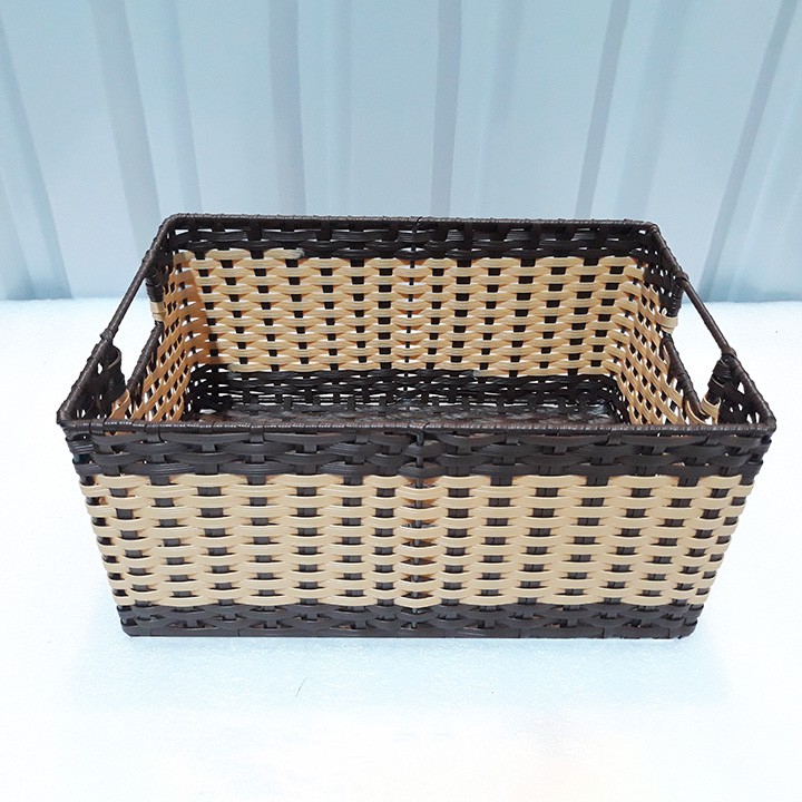 Khay mây nhựa chữ nhật cao (có tay cầm) - size 20x30, 25x35