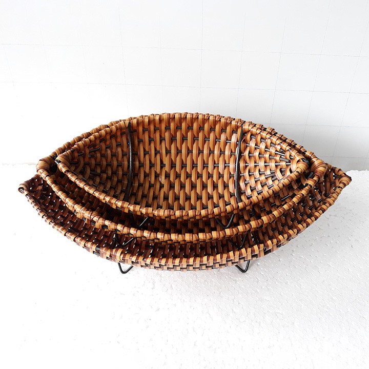 Giới thiệu Khay mây nhựa hình thuyền khung sắt chắc chắn đựng trái cây, bánh trái cây trang trí sang trọng