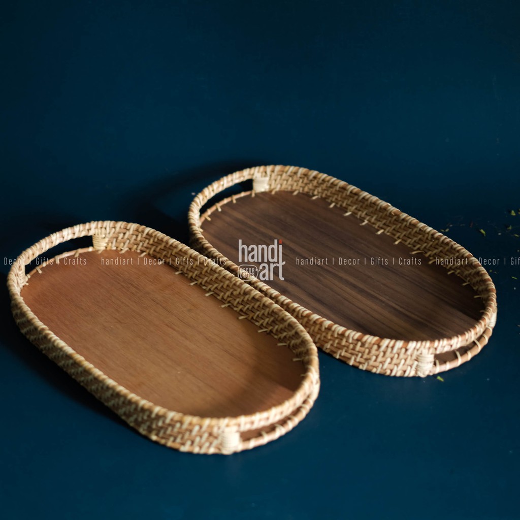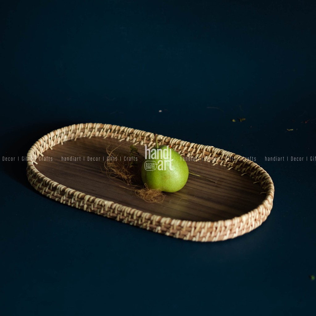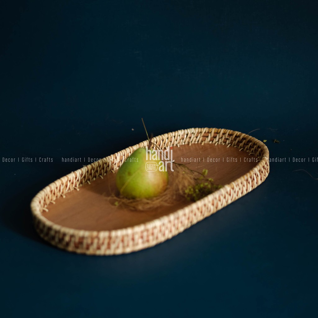 Khay mây oval - Khay oval đế gỗ - Oval rattan tray
