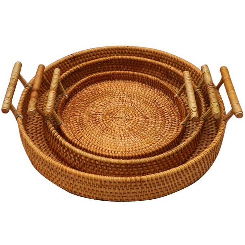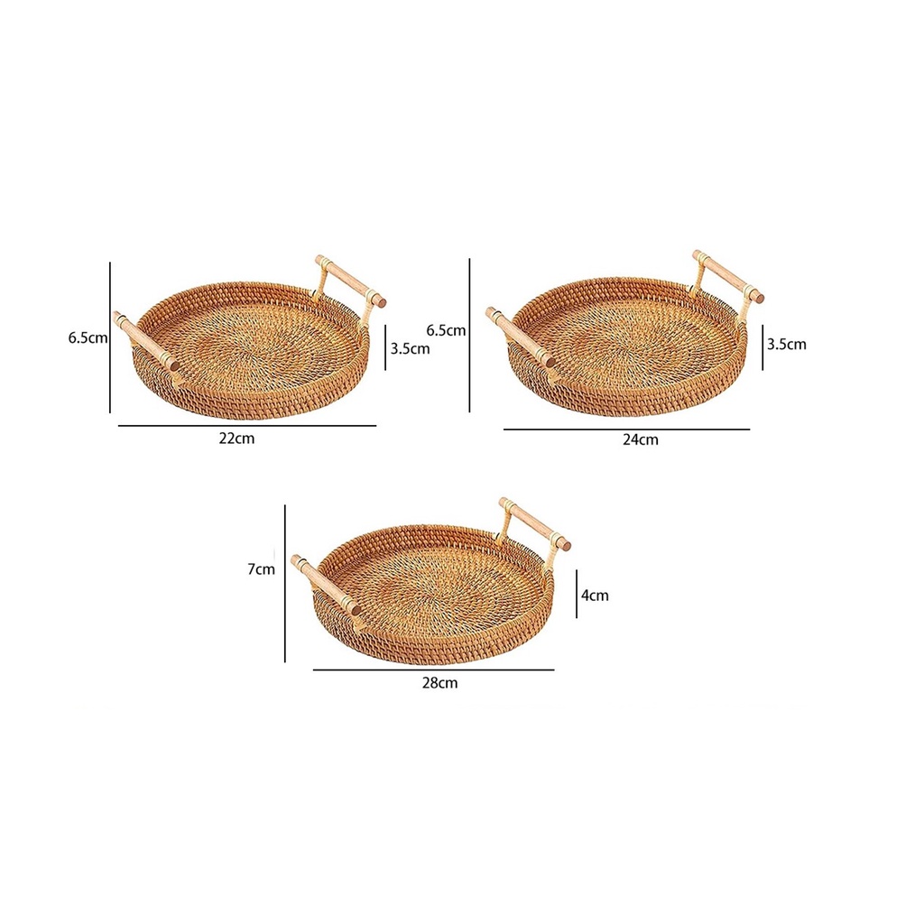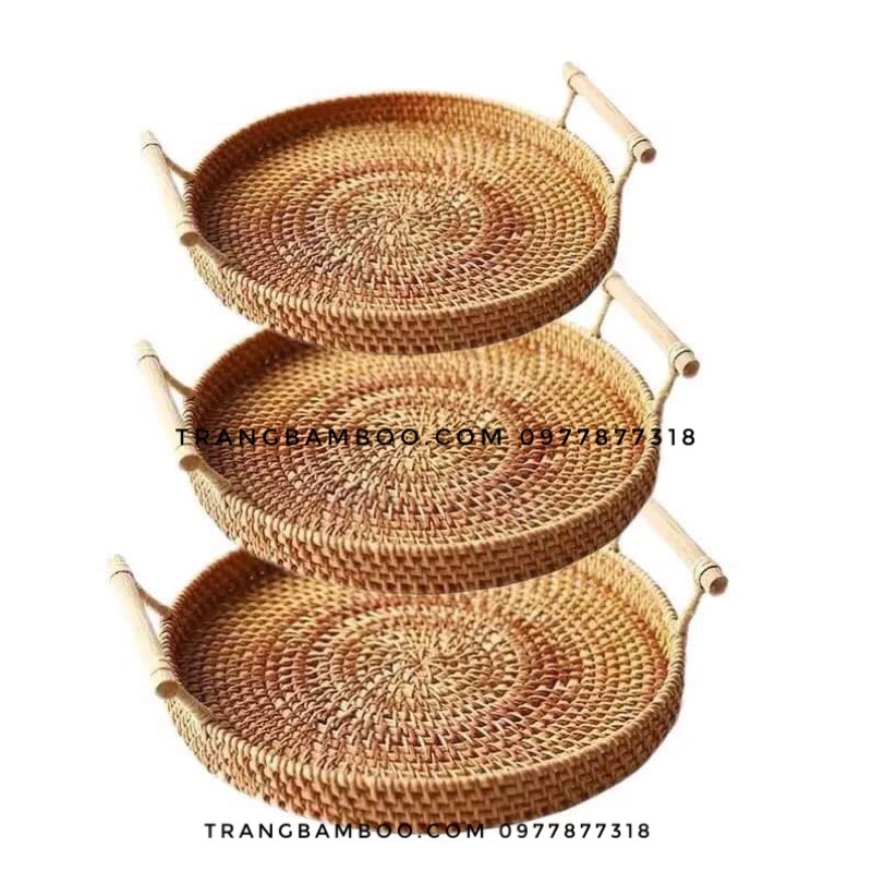 Khay mây đựng đồ uống trà [Handmade], khay guột xiên có quai, dễ sử dụng, đã xử lý qua chất chống mối mọt mốcKhay mây hình tròn có tay cầm, trưng bày món ăn, decor, chụp hình, phụ kiện bàn ăn, khay decor
