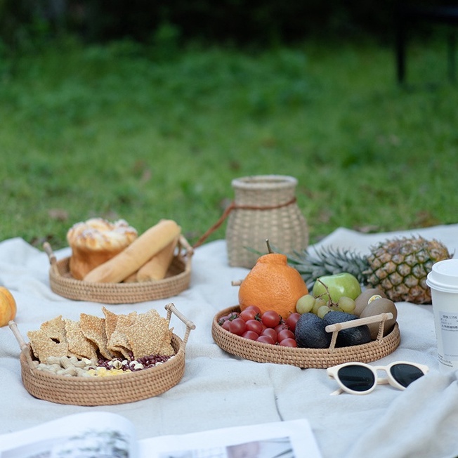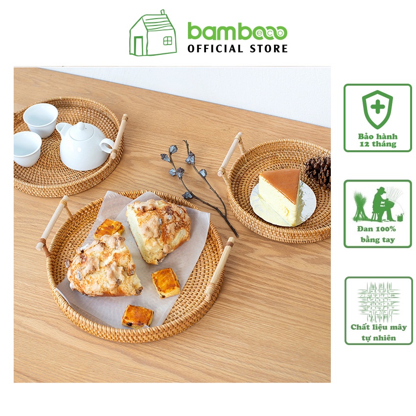 Khay mây thủ công BAMBOOO ECO rổ đựng đồ đa năng trang trí decor