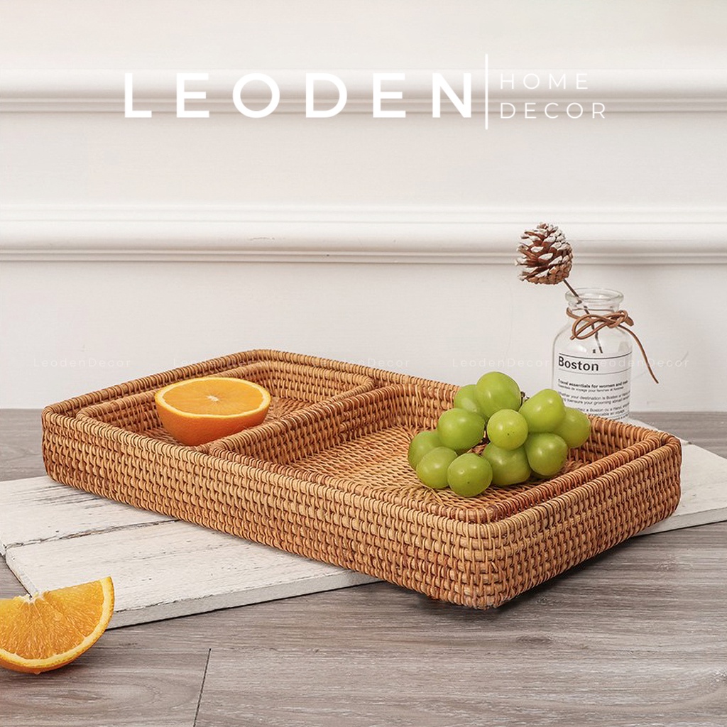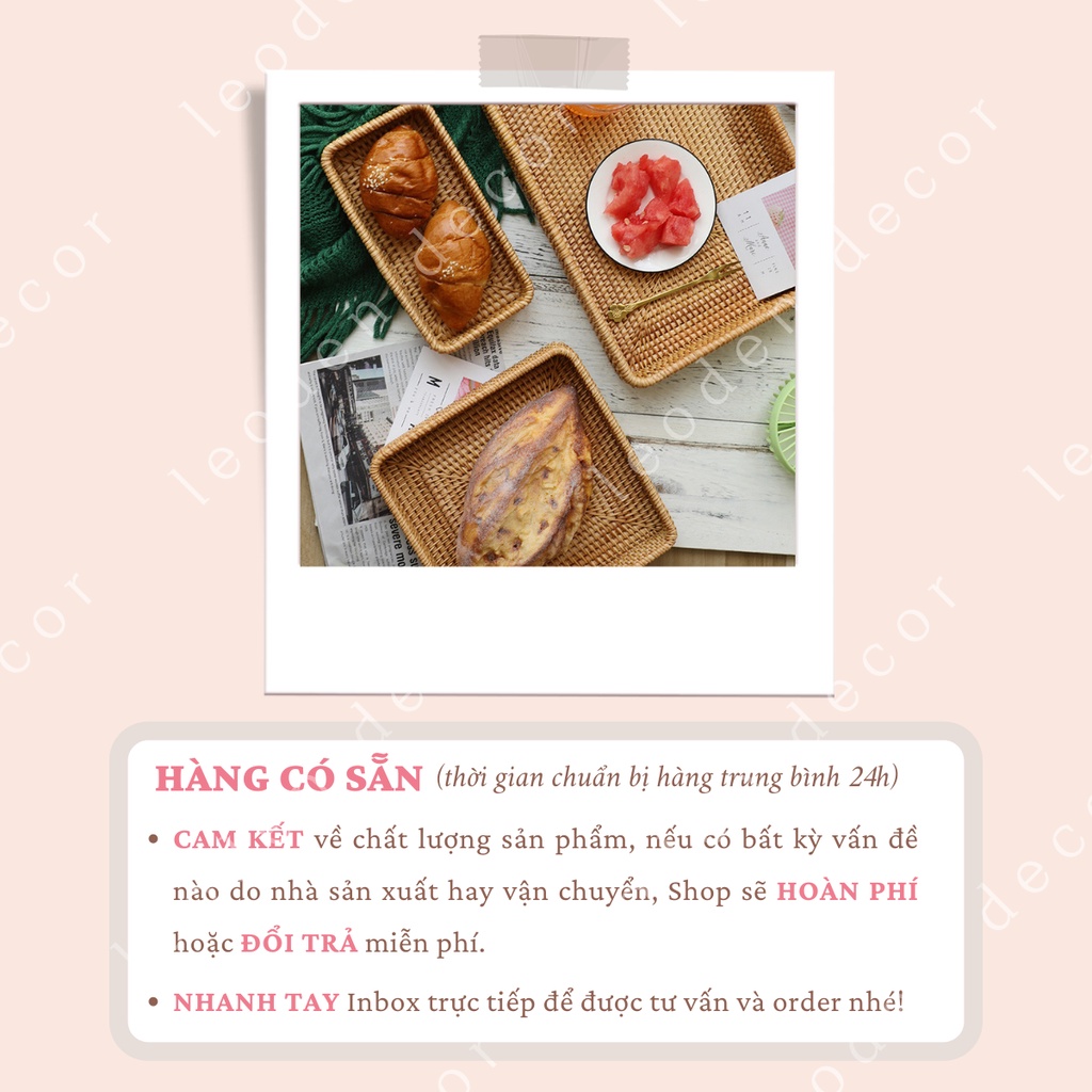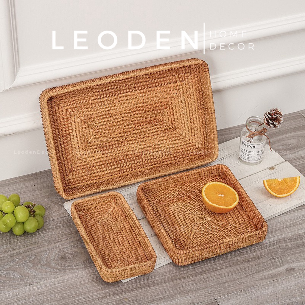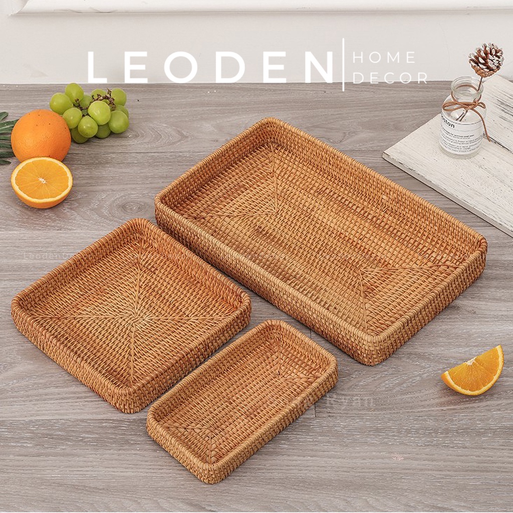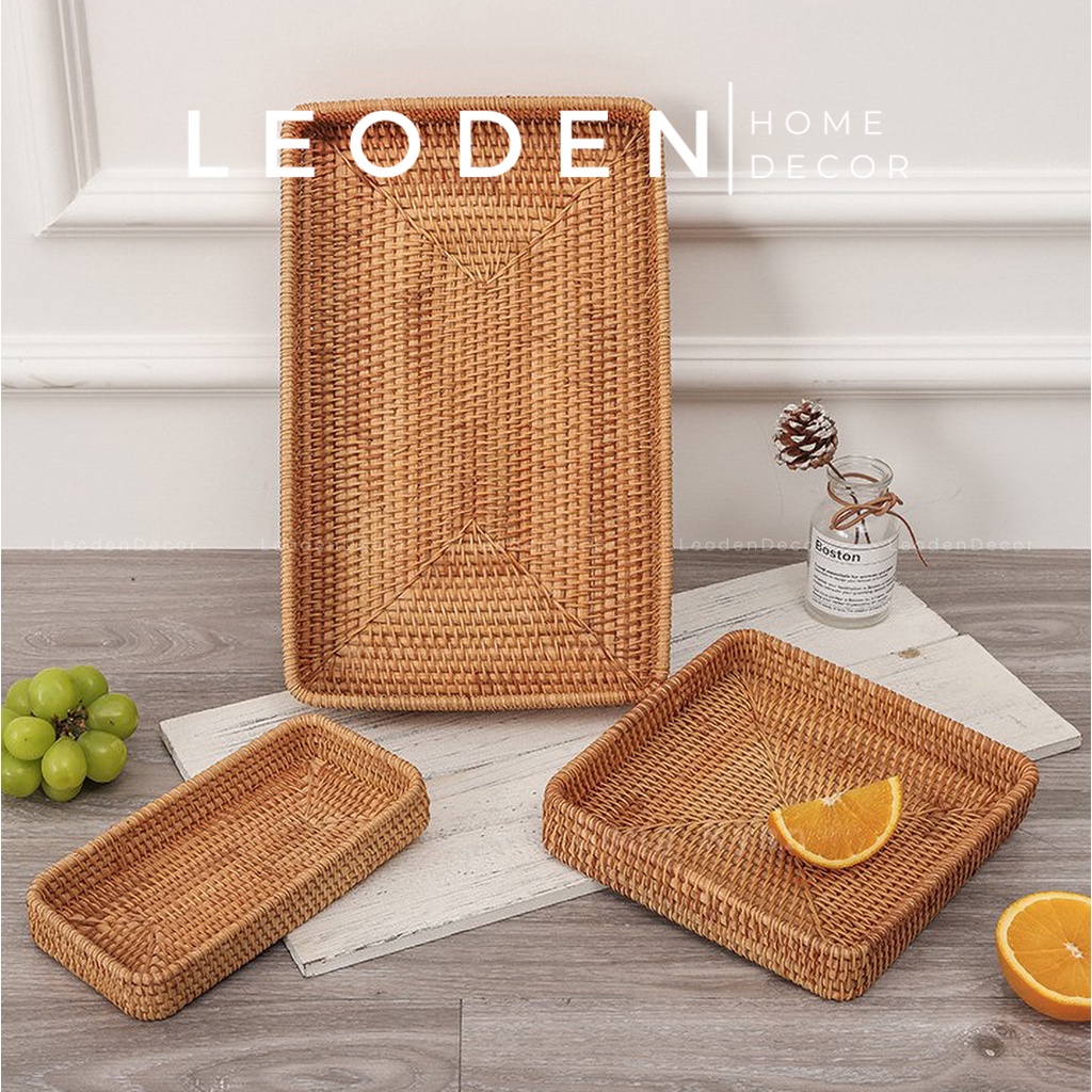Khay mây tre hình chữ nhật đựng đồ ăn nhiều kích thước đẹp, khay mây decor trang trí nhà cửa phụ kiện chụp ảnh -LEODEN DECOR✅ CAM KẾT SẢN PHẨM: