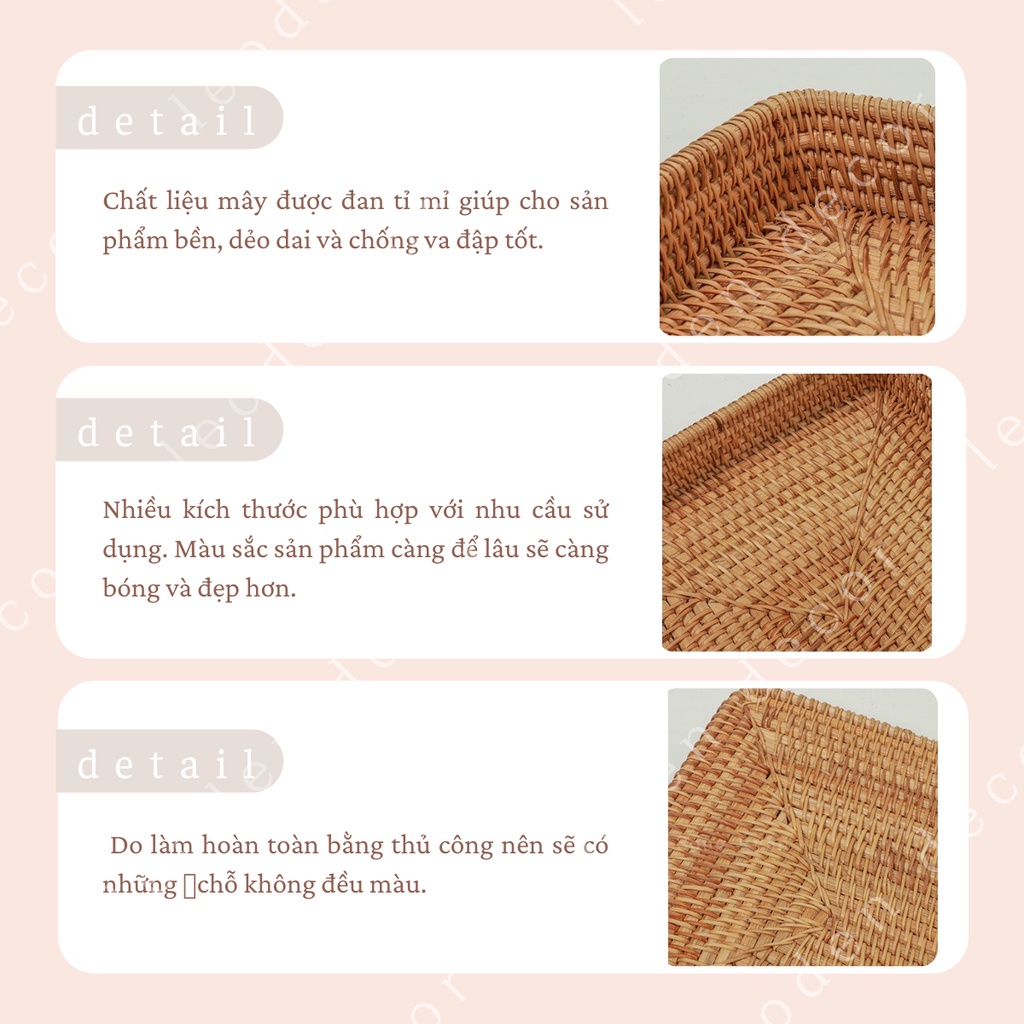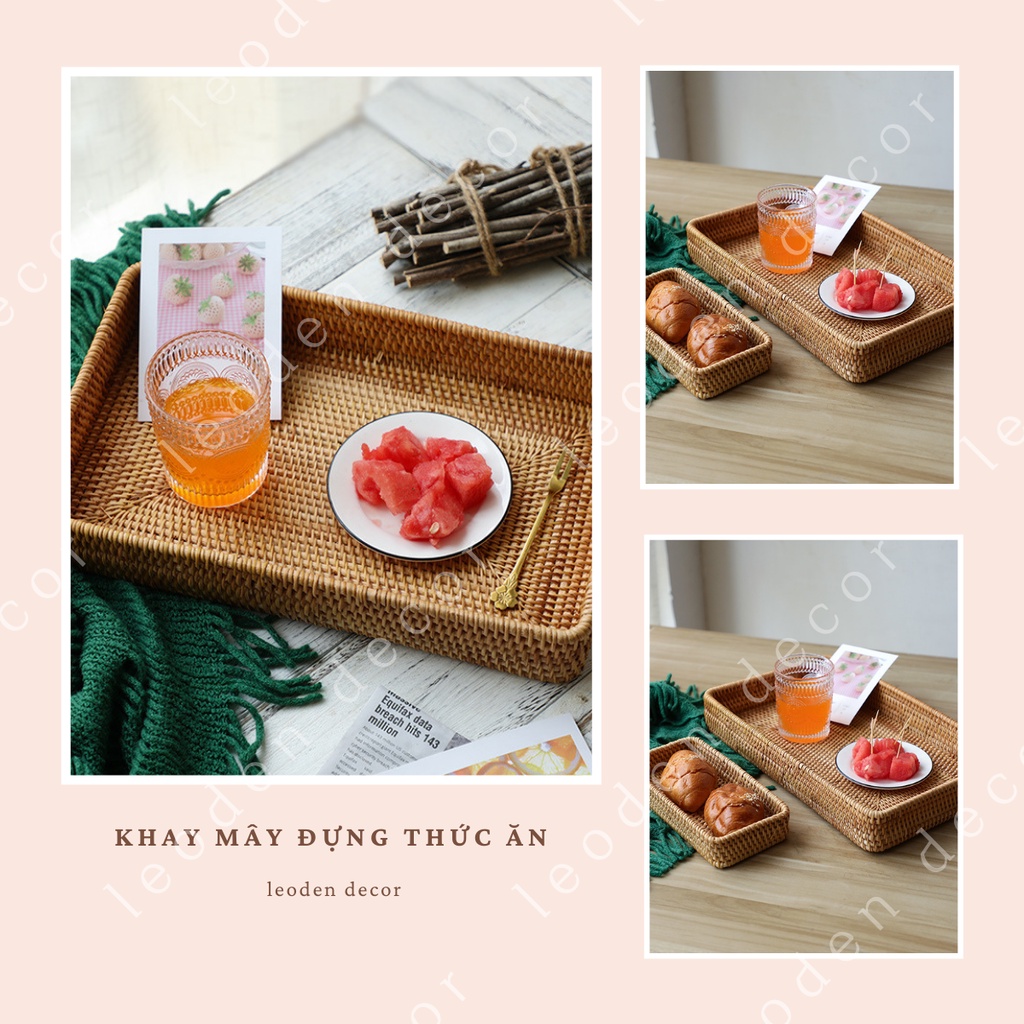 Giới thiệu Khay mây tre hình chữ nhật đựng đồ ăn nhiều kích thước đẹp, khay mây decor trang trí nhà cửa phụ kiện chụp ảnh - LEODEN