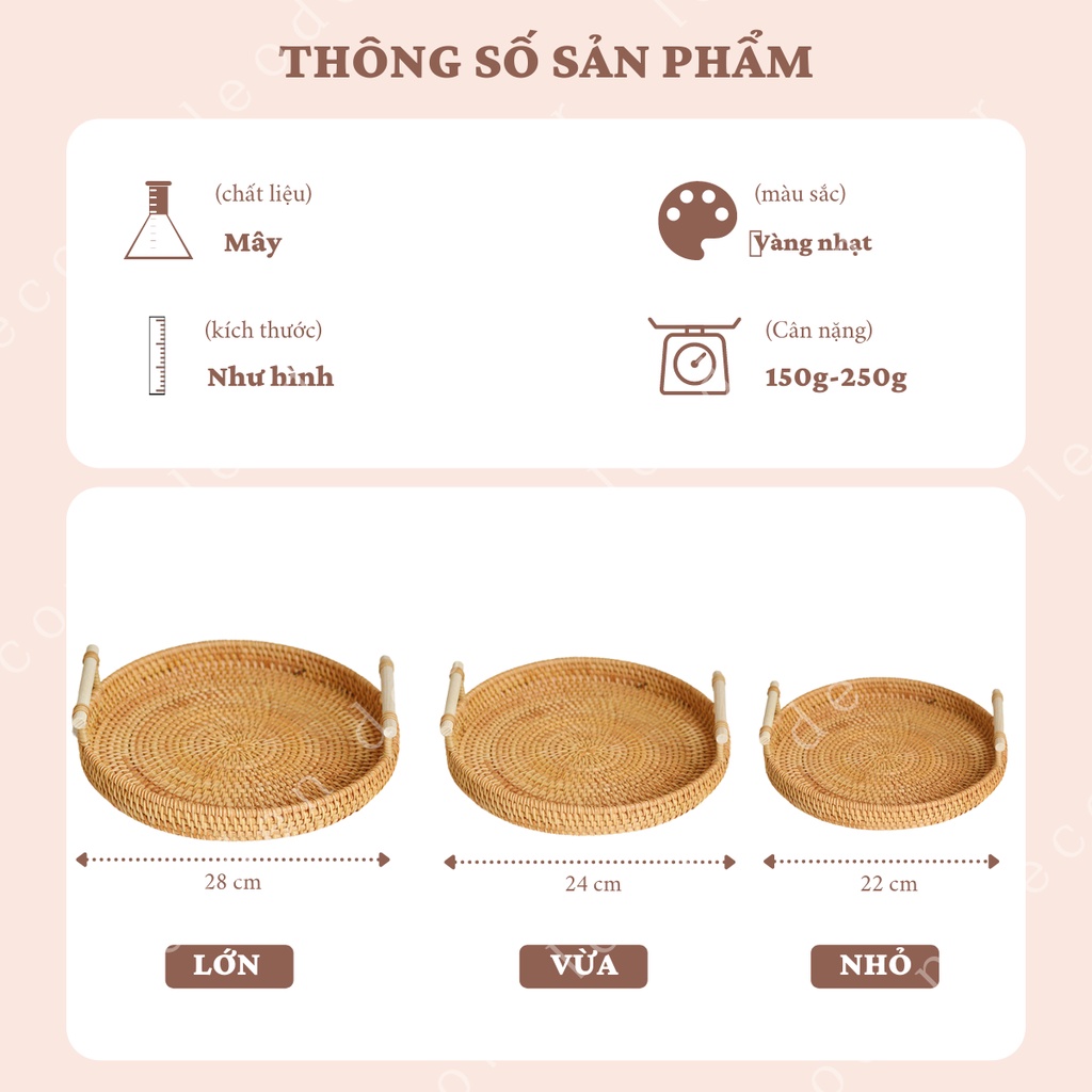 Giới thiệu Khay mây tre hình tròn có quai đựng đồ ăn đẹp, khay mây decor trang trí nhà cửa phụ kiện chụp ảnh - LEODEN DECOR