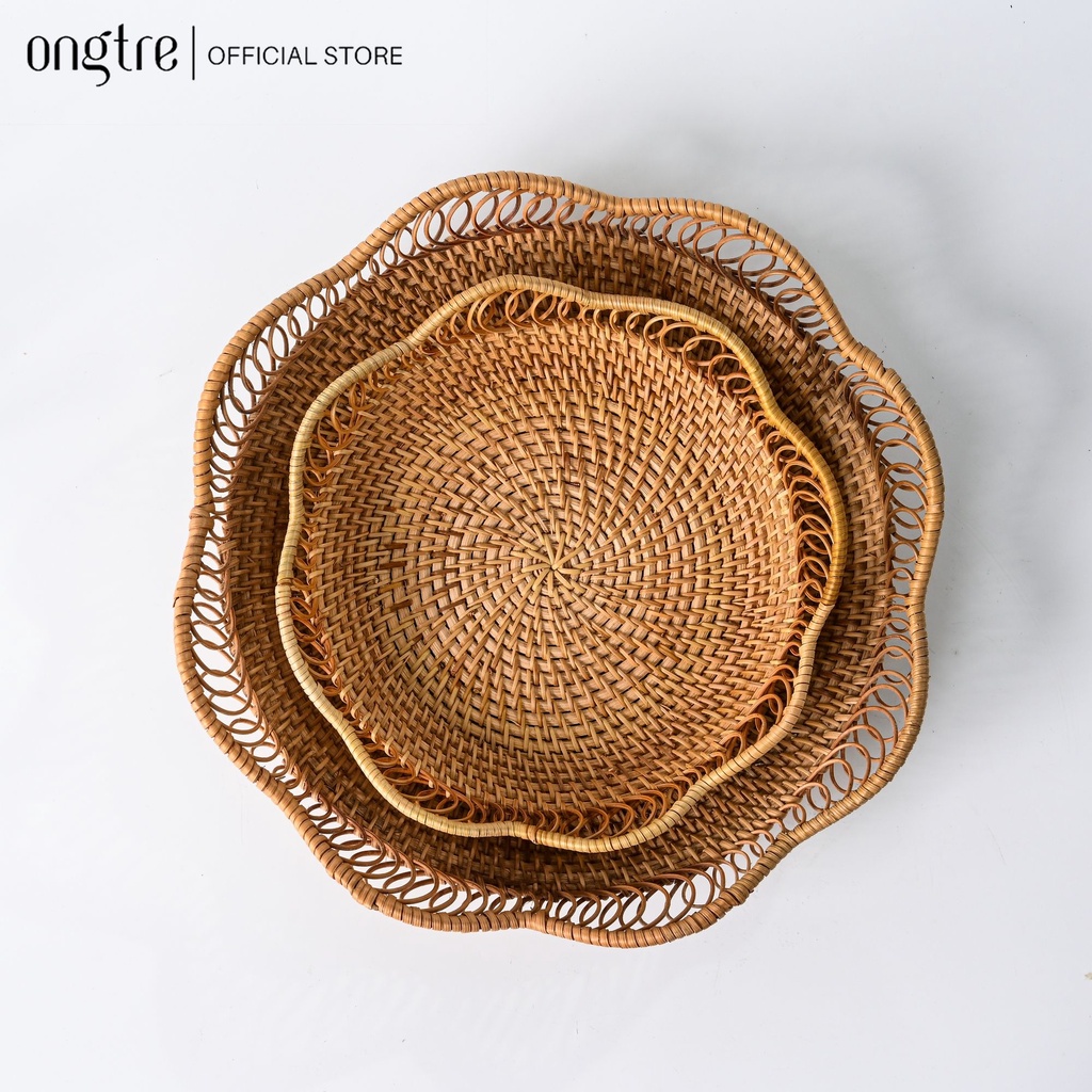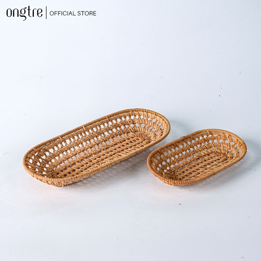 Khay Mây Tre ONGTRE Hình Tròn, Bầu Dục Đựng Bánh Kẹo, Đồ Ăn, Hoa Quả Sạch Sẽ, Tiện Lợi Hàng Thủ Công Mỹ Nghệ