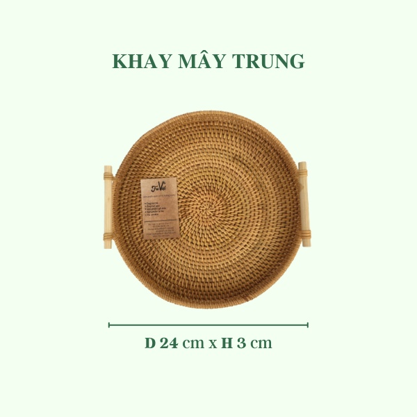 Giới thiệu Khay Mây Tròn có Tay Cầm Đựng Đồ Ăn - Khay Mây Guột Trang Trí Decor 3 kích thước - Rattan Tray