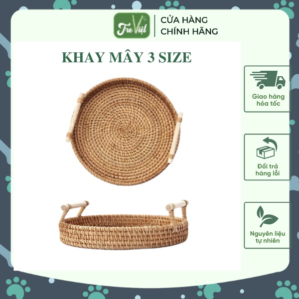 Nhà cửa & Đời sống > Bộ đồ bàn ăn > Khay, tấm lót bàn ăn || Khay Mây Tròn có Tay Cầm Đựng Đồ Ăn - Khay Mây Guột Trang Trí Decor 3 size - Rattan TrayCòn hàng