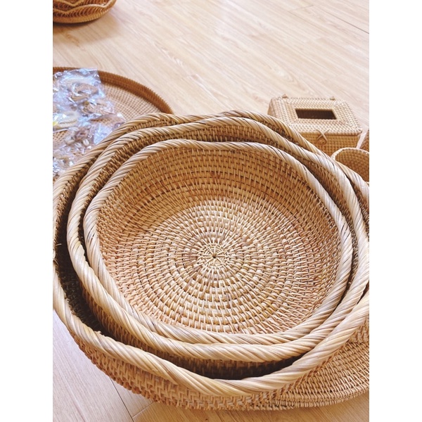 Bộ 3 khay mây tròn Vintage hàng xuất Nhật chuẩn xịn, hàng mới sản xuất liên tục ( nói không với hàng tồn kho, cũ )Với kinh nghiệm sản xuất lâu năm nghề truyền thống mây tre cói bèo, thợ làng nghề đan sản phẩm tinh xảo, cẩn thận nhất