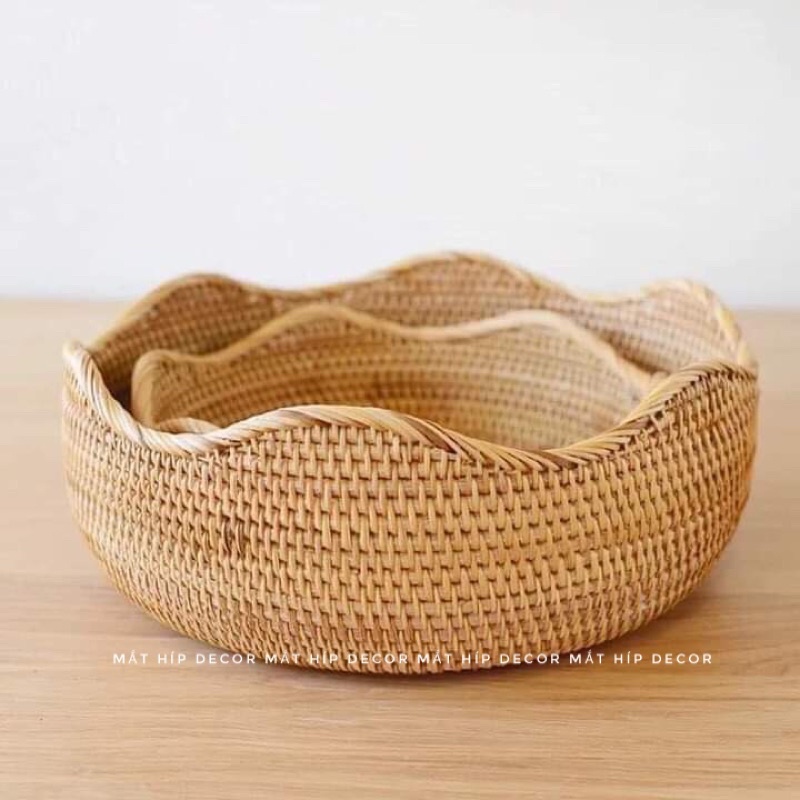 Nhà cửa & Đời sống > Bộ đồ bàn ăn > Khay, tấm lót bàn ăn || Khay mây Vintage hình hoa sen tặng giấy lót bộ 3 cái dùng để đựng hoa quả, bánh kẹo, dùng để chụp ảnh decor rất đẹpCòn hàng