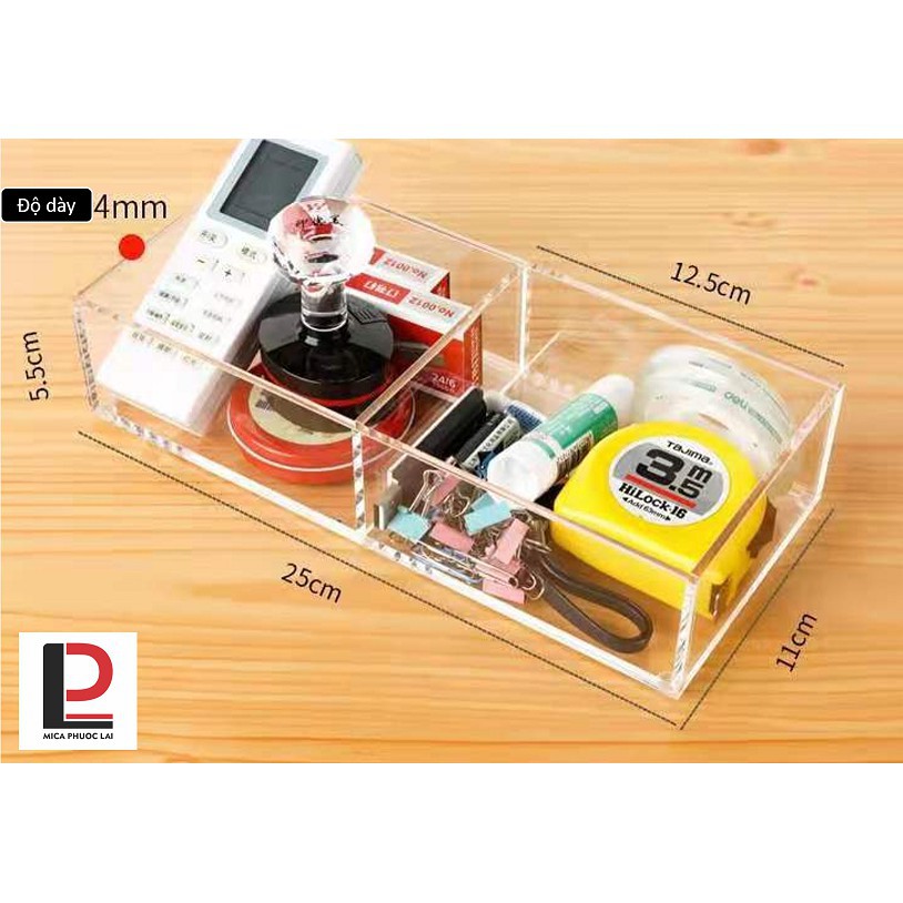 Tên sản phẩm: Khay mica 2 ngăn để bàn/ Hộp lưu trữ đồ dùng cá nhân