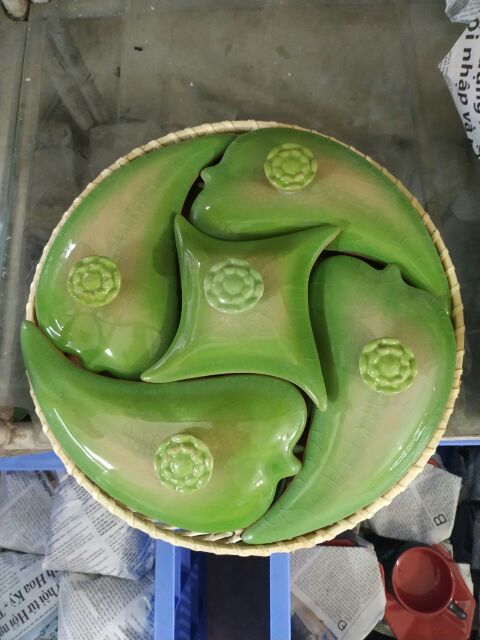 Nhà cửa & Đời sống > Bộ đồ bàn ăn > Dĩa || Khay mứt 5 ô hình lá màu mới đón tết 2020Còn hàng