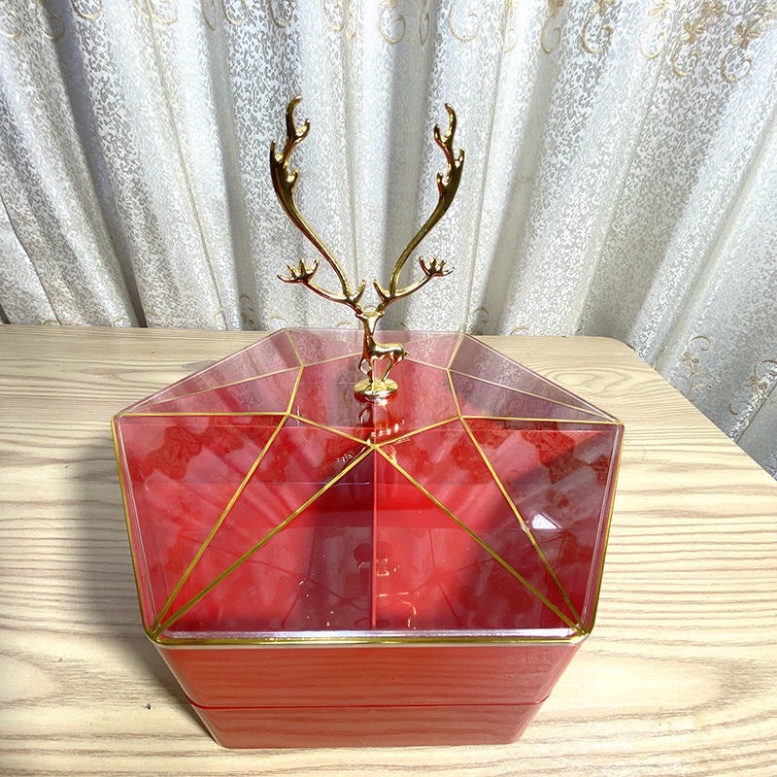 Shop đồ gia dụng giá rẻ 68 xin giới thiệu sản phẩm Khay Mứt Bánh Kẹo Tết 2 Tầng Hình Lục Giác Tay Nắm Con Huơu Phong Cách Sang Trọng Cao Cấp