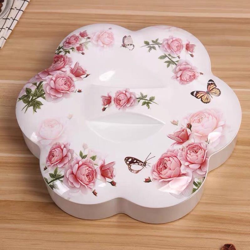 Nhà cửa & Đời sống > Bộ đồ bàn ăn > Dĩa || Khay mứt hình cánh hoaFREESHIPKhay mứt phíp 7 ngăn hình 6 cánh hoa cao cấpCòn hàng
