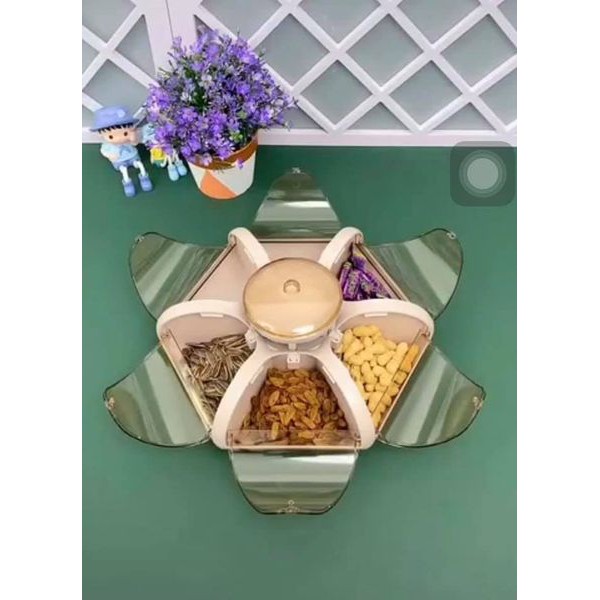 🌸 KHAY MỨT HOA 6 CÁNH TỰ BUNG CỰC SANG🍀 Khay đựng mứt kẹo mẫu mới nhất năm nay 1 tầng 6 ngăn chính + 1 ngăn bonus, vừa đựng được mứt kẹo lại còn trang nhã như 1 tác phẩm trang trí. Khay còn cả chỗ để tăm các kiểu nữa rất chi là tiện lợi. Khay được thiết kế hình bông hoa 6 cánh bung ra rất đẹp mắt và gọn gàng. Màu sắc trang nhã, siêu đẹp, phù hợp với mọi gia đình.