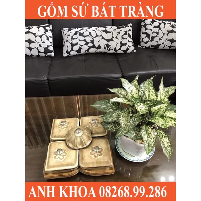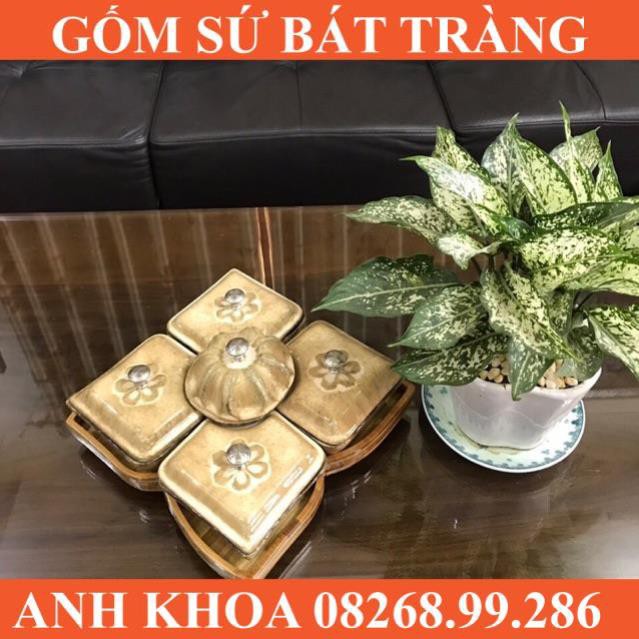 Bộ khay mứt men mới Bát Tràng cao cấp - Gốm sứ Bát Tràng Anh Khoa
