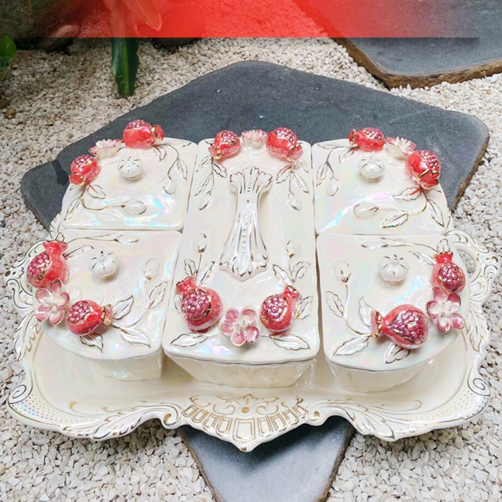 Nhà cửa & Đời sống > Bộ đồ bàn ăn > Dĩa || Khay mứt sứ 6 ngăn sứ họa tiết cao cấpCòn hàng