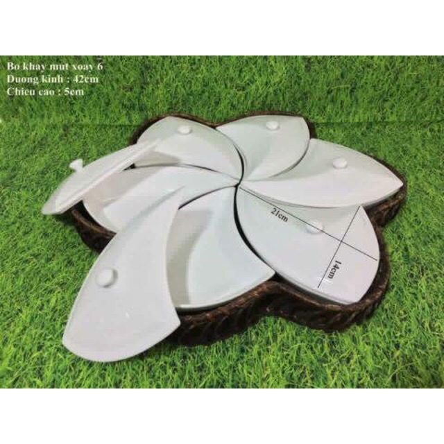 Bộ khay mứt sứ Bát Tràng hình cánh hoa 6 cánhĐường kính 43cm