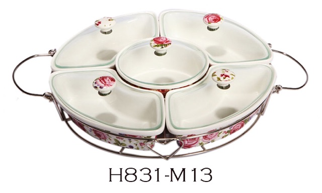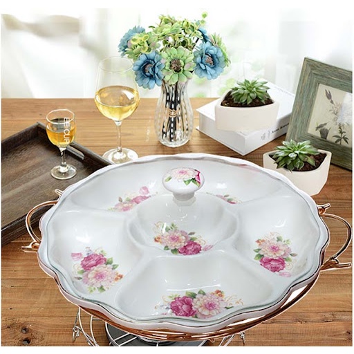 Nhà cửa & Đời sống > Bộ đồ bàn ăn > Dĩa || Khay mứt sứ chia ngăn lắp kính cao cấpCòn hàng