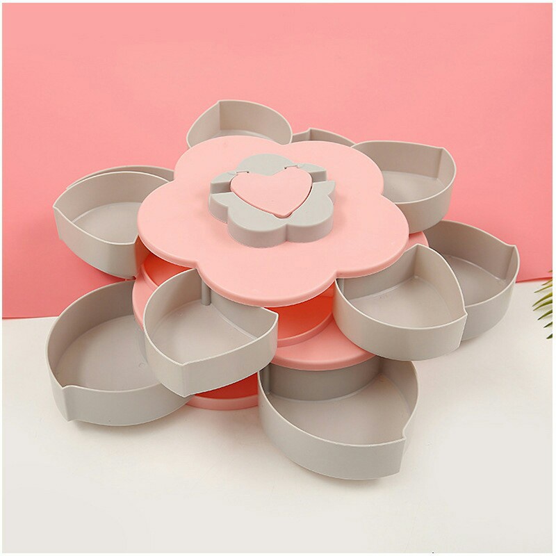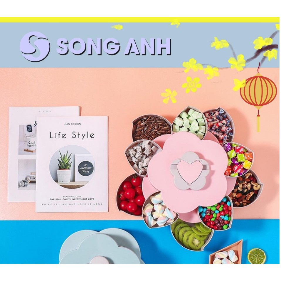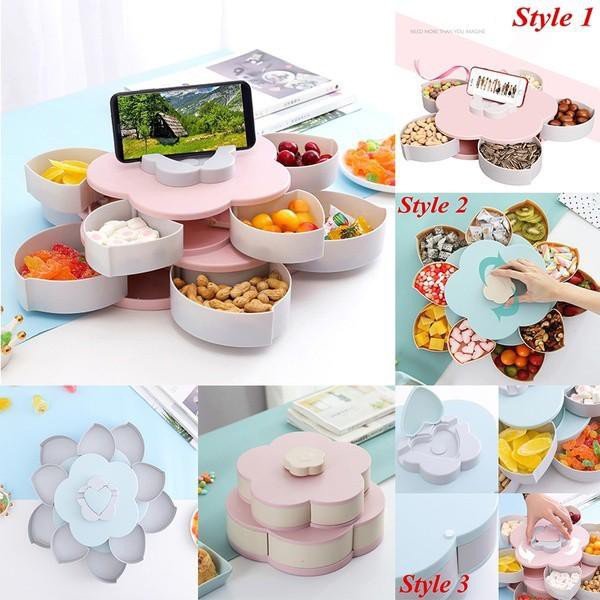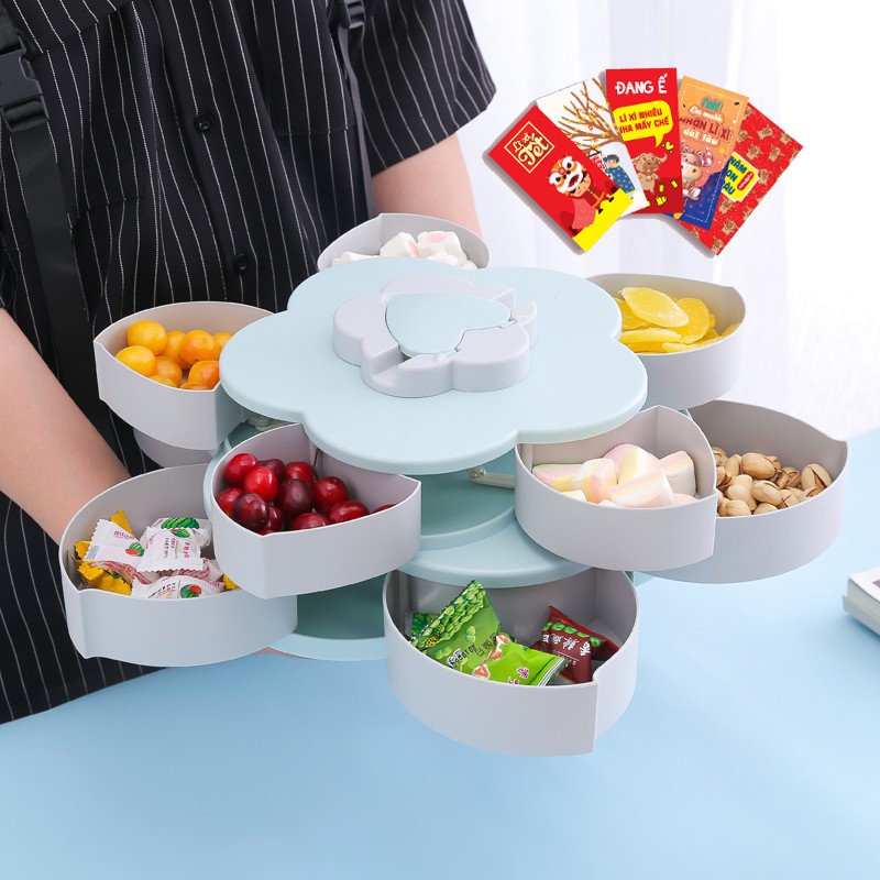 khay mứt tết , khay đựng bánh kẹo các loại hạt mứt tết bằng nhựa cao cấp 1 2 tầng hình cánh hoa kèm giá đỡ điện thoại