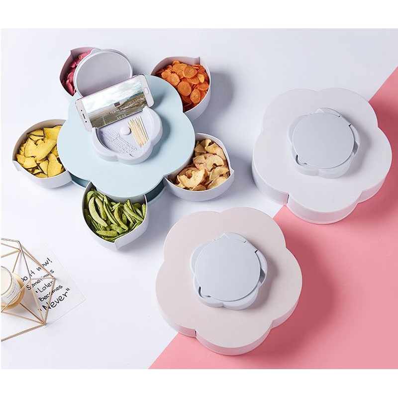 Nhà cửa & Đời sống > Bộ đồ bàn ăn > Dĩa || Khay mứt xoay 5 cánh hình hoa xoay tự động có khe để điện thoạiCòn hàng