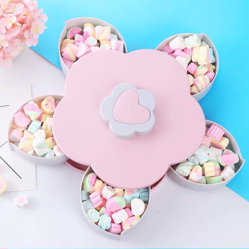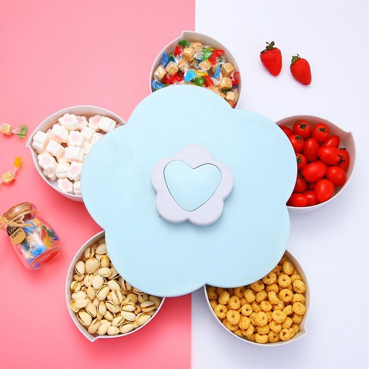 Khay mứt xoay 5 cánh hình hoa xoay tự động có khe để điện thoại