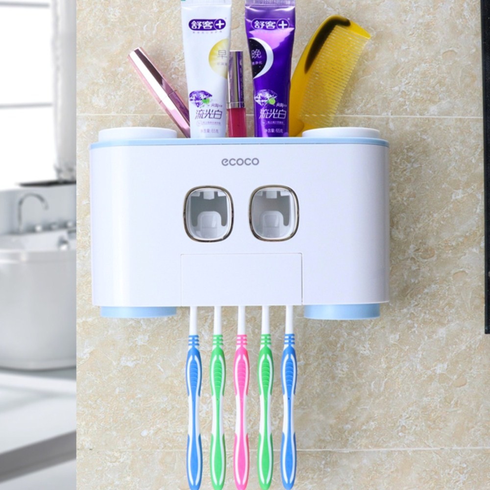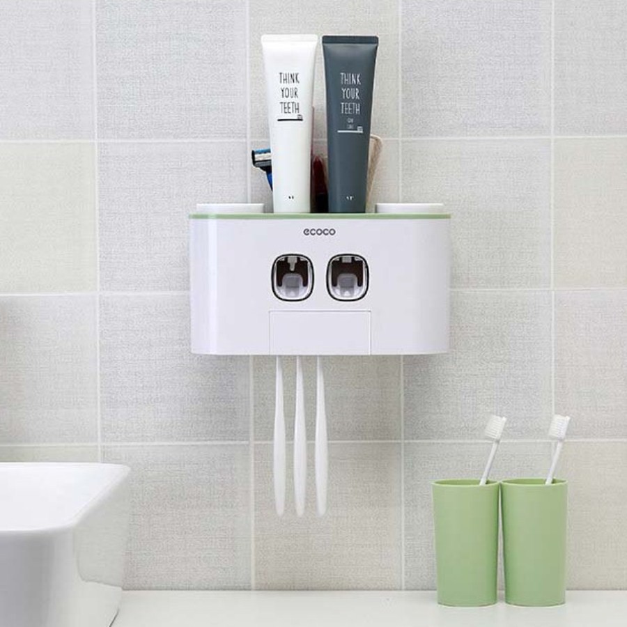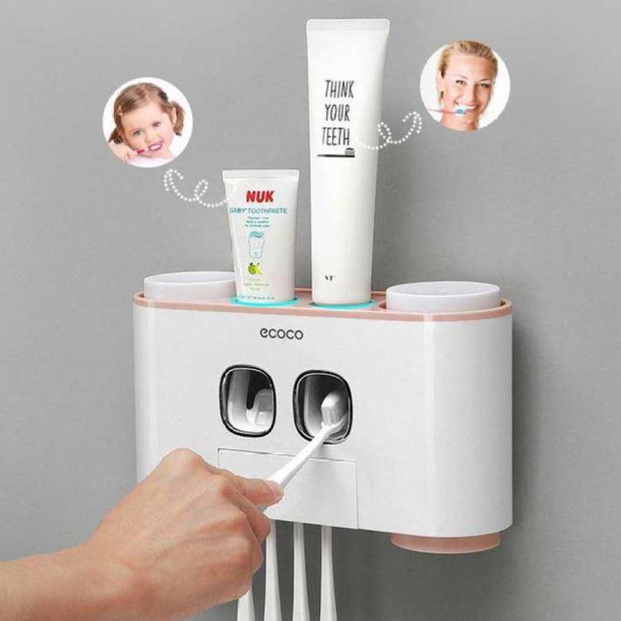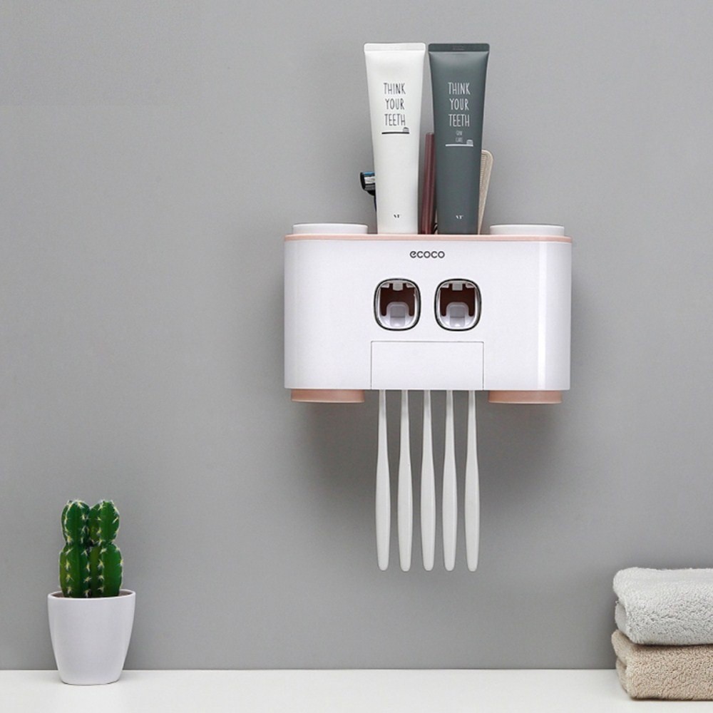 [Nhả kem, để bàn chải, để cốc] Khay nhả kem đánh răng tự động cao cấp ECOCO<<< Tích hợp khay để, nhả kem đánh răng, giá để bàn chải đánh răng, giá để cốc - Kèm 4 cốc >>>