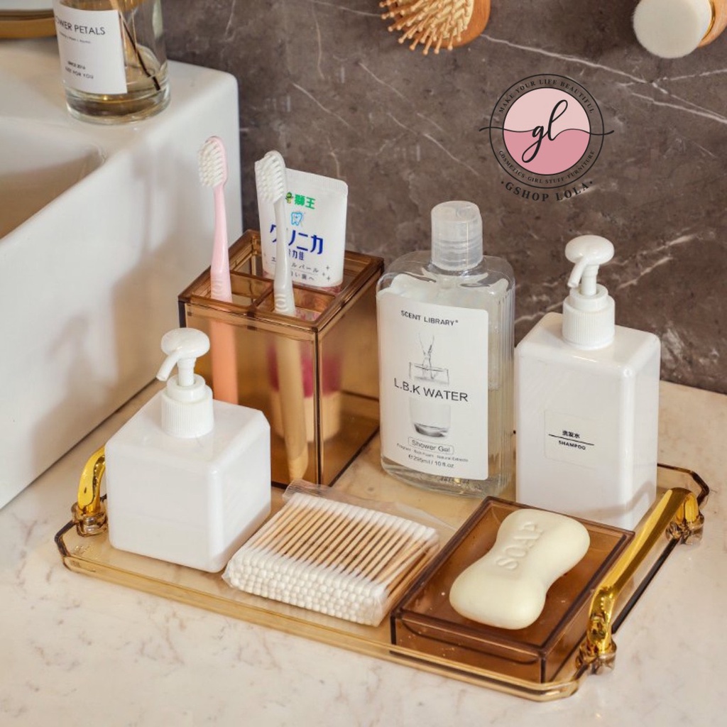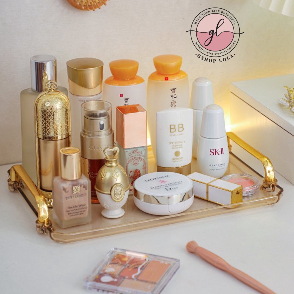 Khay nhựa bày đồ trang điểm, skincare bàn trang điểm, phòng tắm, có thể bày chén trà, bánh ngọt phòng khách có tay xách