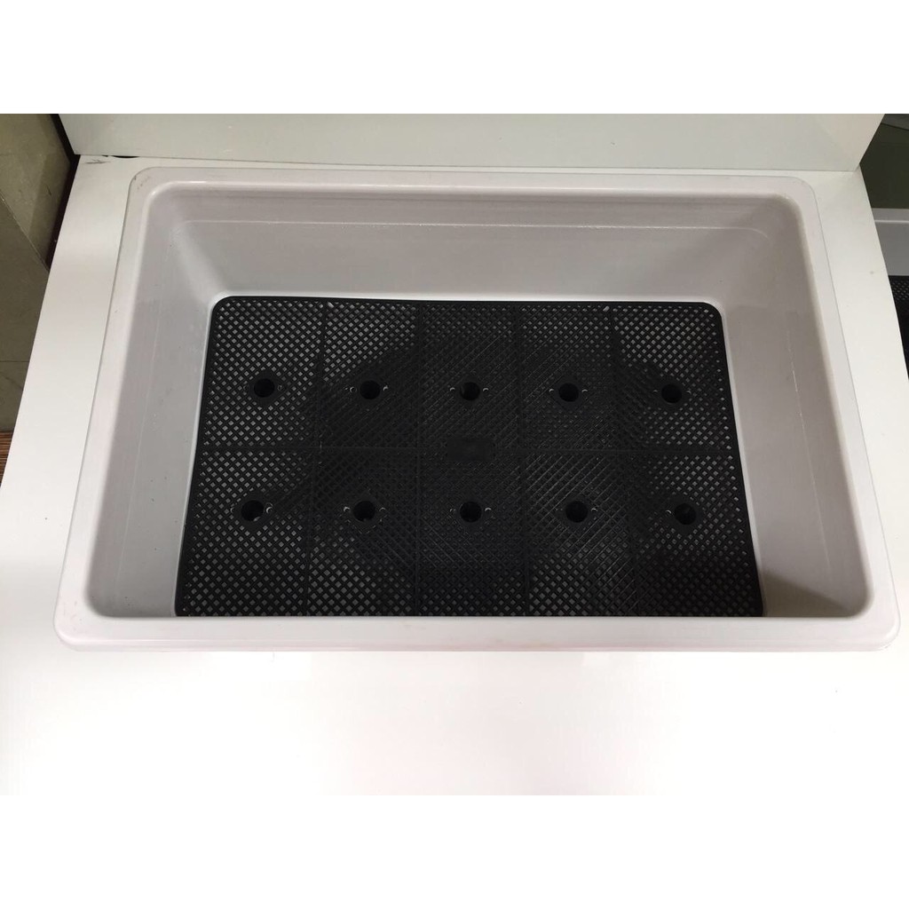 Với chậu trồng rau thông minh, lượng nước dư thừa được lọc qua một tấm lưới với thiết diện rộng và nhiều lỗ Nhờ vậy nước dễ dàng chảy xuống phần dưới đáy chậu và chảy ra ngoài với chỉ 1 hoặc 2 lỗ nhỏ