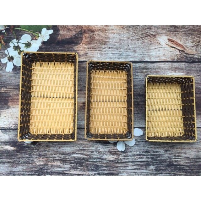 Khay chữ nhật nhựa giả mây đựng hoa quả bánh kẹo đồ dùng tiện lợi. Khay được làm bằng chất liệu nhựa khung sắt vô cùng chắc chắn và đẹp mắt.Sản phẩm có 3 kích cỡ: