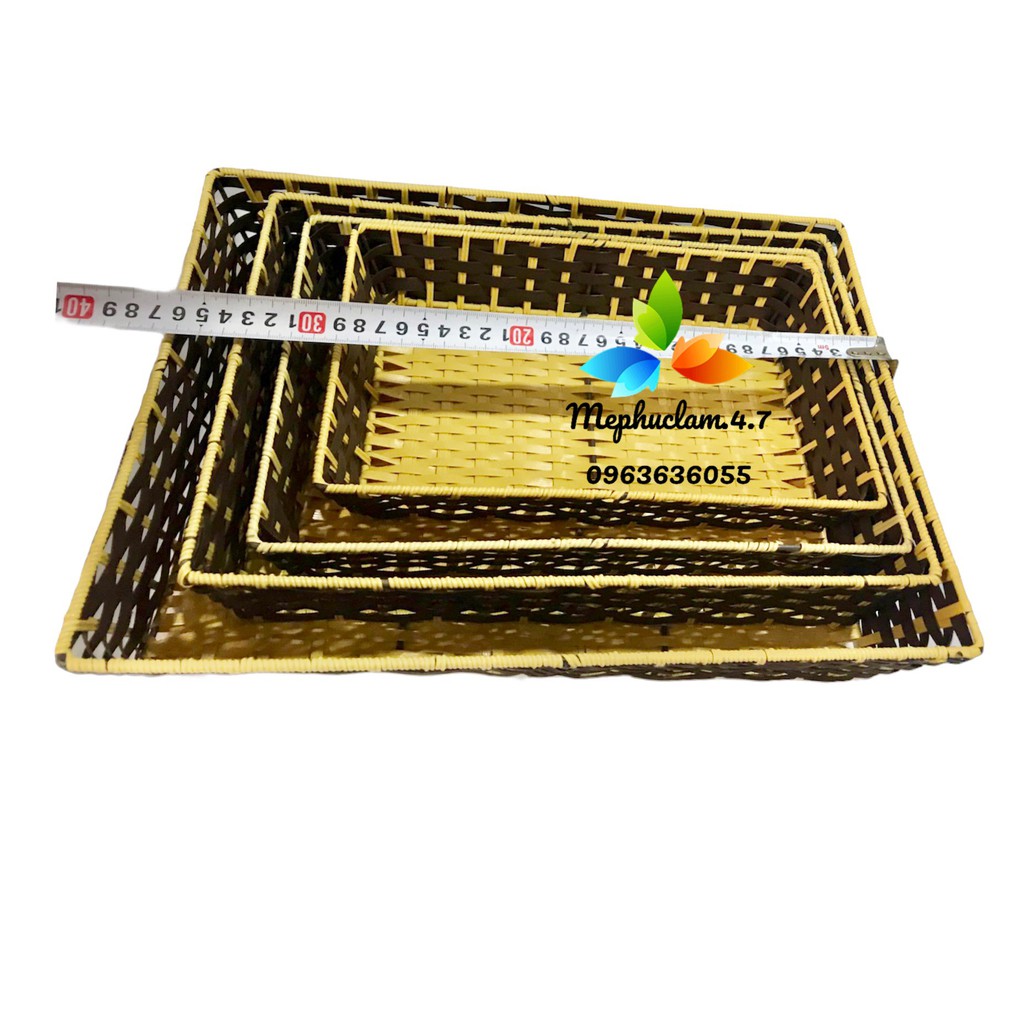 Khay nhựa giả mây hình chữ nhật dùng trong nhà nghỉ, khách sạn, hộ gia đình, quán cafe,...nhiều kích thước