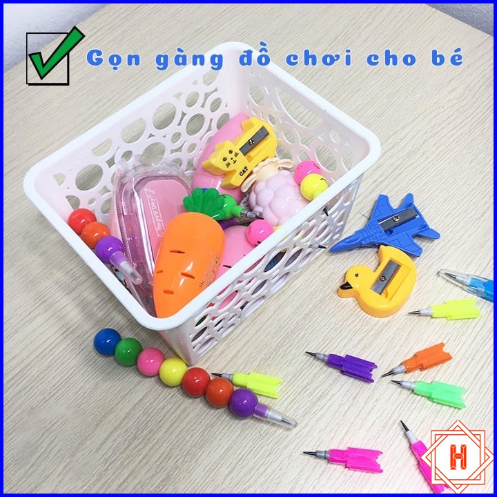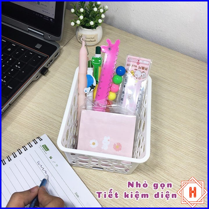 - Thiết kế thông minh với độ sâu, nhiều lỗ thoáng khí và có tay cầm tiện ích của Khay nhựa Hàn Quốc bé Song Long 2335 thoải mái đựng các vật dụng văn phòng phẩm, vật dụng sinh hoạt hoặc mỹ phẩm chai lọ hay bút kẻ, nước hoa có độ dài cao cho đến các vật dụng linh tinh nhỏ dễ thất lạc mà không có vấn đề trở ngại nào.