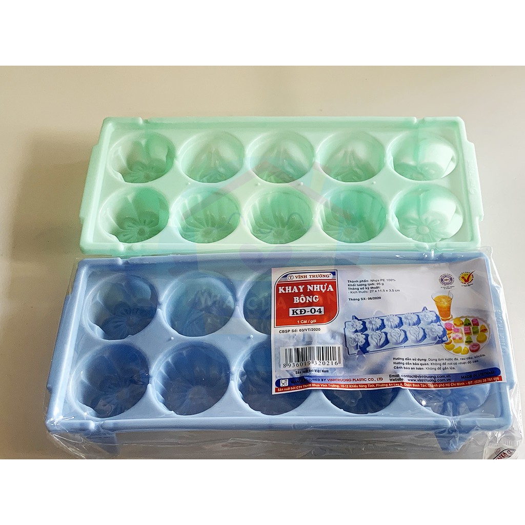 Giới thiệu Khay nhựa làm đá, khuôn làm thạch rau câu Vĩnh Trường hình bông hoa nhiều hình, chất liệu nhựa PE bền, sạch, an toàn