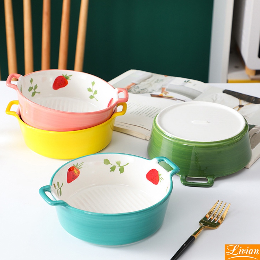 Giới thiệu Khay nướng, bát sứ tròn có quai cầm nhiều màu sắc dễ thương [ HÀNG CÓ SẴN]
