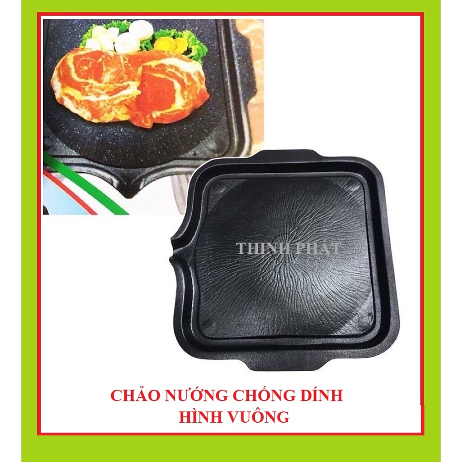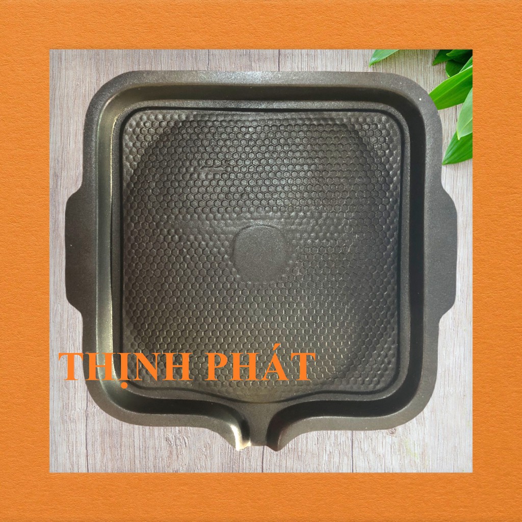 Khay được làm bằng hợp kim gang phủ lớp chống dính cao cấpKiểu vuông với đường kính 30 cm vành cao 2.1cm
